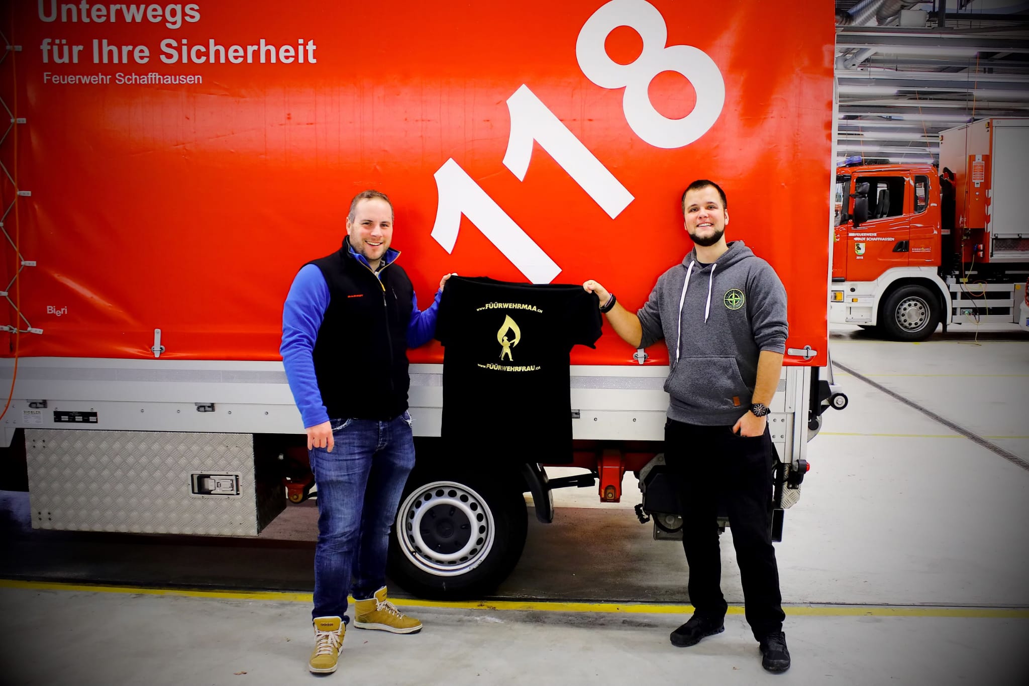 Am 24.12.2019 überreichte Patrick, unser Community-Kommandant, dass FÜÜRWEHRMAA / FÜÜRWEHRFRAU T-Shirt #1 in Gold im Feuerwehrmagazin Schaffhausen seinem neuen Besitzer Kevin.